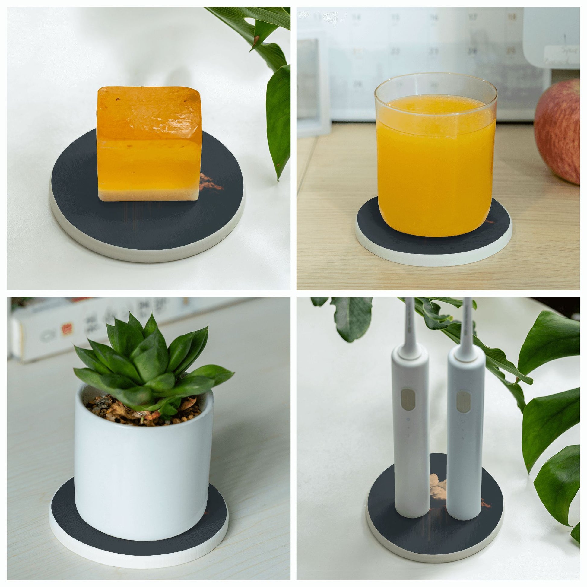 Crafted from natural diatomaceous earth, the coaster offers excellent absorbency and rapid drying, efficiently soaking up moisture from your cups and protecting surfaces from water stains or heat marks. The material is naturally antibacterial, odor-free, and environmentally friendly – safe for everyday use.