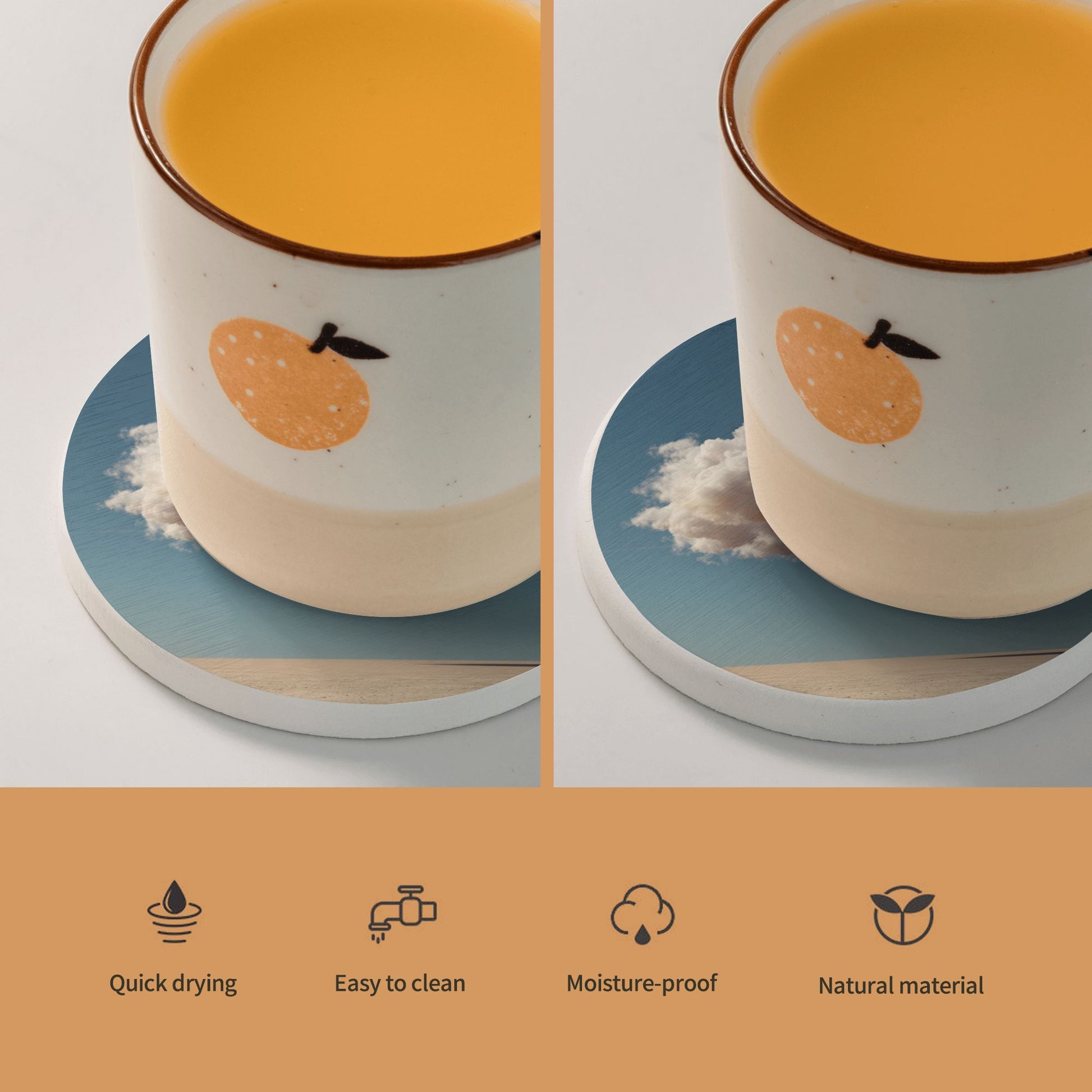 4" Desert & Cloud Landscape Diatomite Round Coaster – Fast Absorbent, Heat-Resistant, Non-Slip Natural Drink Mat